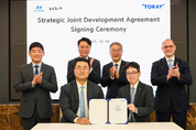 현대자동차그룹은 지난 10월 24일(금) 도레이그룹과 전략적 공동 개발 계약(Strategic Joint Development Agreement)을 체결했다고 27일 밝혔다. 이날 체결식은 서울 양재동 현대차그룹 본사 사옥에서 열렸으며 현대차그룹 GSO(Global Strategy Office)본부장 김흥수 부사장, 기초소재연구센터장 홍승현 상무, 도레이그룹 테라다 미키 복합재료사업본부 부문장, 도레이첨단소재 김영섭 사장 등 양사 관계자들이 참석했다. 현대차그룹은 지난해 4월 도레이그룹과 모빌리티 성능 향상 및 안전성 확보를 위해 탄소섬유 강화 플라스틱(CFRP) 등 고성능 복합소재 공동 개발에 대한 포괄적 협력 계약(Master Agreement)을 맺었다. 이후 양사는 긴밀한 협업을 통해 시너지를 극대화할 수 있는 프로젝트를 발굴하고 양사의 역량을 결합한 공동 개발 추진 방안을 구체화했다. 현대차그룹은 양사의 파트너십을 보다 구체화한 이번 계약을 통해 △고성능 차량 △달 탐사 전용 로버(Rover), 휴머노이드 로봇을 포함한 특수목적형 모빌리티 등 미래 모빌리티에 적용하기 위한 첨단소재 및 부품 개발 협력을 강화할 계획이다. 더불어 현대차그룹은 도레이그룹