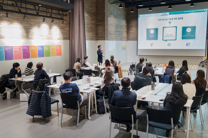 이어진 ‘테이블 토크’와 ‘네트워킹’ 시간에서는 참석한 기업/기관의 소개와 더불어 지속가능성에 대한 각 기업의 고민과 사례를 나누고 협력 방안을 논의했다. 마지막으로 ‘솔루션 체험’ 순서에는 사례 발표에서 소개된 아동 맞춤 이동보조기기와 휠체어 운동을 직접 체험해 보는 시간을 가졌다.