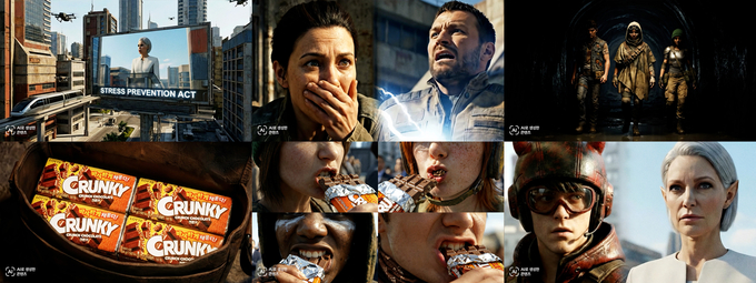 지난 4일 롯데웰푸드 공식 유튜브 채널 ‘맛깔스튜디오’를 통해 첫 공개된 스낵시네마 제1화는 영화 <패션왕> 등을 연출한 오기환 감독의 작품 ‘바삭한 도시’다. 롯데웰푸드의 대표 초콜릿 브랜드 ‘크런키’를 모티브로 한 이 작품은 소음을 철저히 통제당해 스트레스에 취약해진 가상의 세계를 배경으로 한다. 주인공이 크런키를 통해 잃어버린 일상의 활력과 자유를 되찾는다는 흥미로운 세계관을 AI 기술을 활용해 감각적인 영상미로 구현해 냈다. 매 작품마다 독특한 시각적 재미를 선사해 온 오 감독 특유의 감성이 크런키의 바삭함과 이야기의 통쾌한 매력을 한층 끌어올렸다.
