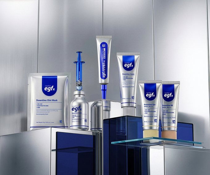 이지에프 엑스 라인의 출시 제품은 ▲다운타임 오인트 겔(15mL) ▲다운타임 세럼(40mL) ▲다운타임 크림(60mL) ▲다운타임 오인트 마스크(23g x 4매) ▲다운타임 선(35mL) ▲다운타임 비비(35mL) 등 총 6종으로 구성됐다. 대표 제품인 ‘다운타임 오인트 겔’은 DW-EGF 성분을 국내 최대 함량인 10ppm 함유한 고농축 제품으로, 피부 전문 관리 후 피부 장벽을 집중 케어하며 인체적용시험에서는 다운타임 속도를 2배 이상 단축하는 결과를 확인했다.