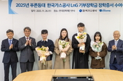한국가스공사(사장 최연혜)는 11월 26일 한국장학재단 대구 본사에서 ‘LnG(Leading & Growing) 장학증서 수여식’을 열고 전국 대학생 160명에게 장학금 3억 2천만 원을 지원했다고 밝혔다. 이날 행사에는 안준영 가스공사 상생협력처장 및 배병일 장학재단 이사장을 비롯한 양 기관 관계자들과 장학생 대표 등 20여 명이 참석했다. 1999년 ‘청연 장학생’ 선발을 시작으로 자체 장학 사업을 시행해 온 가스공사는 2013년부터 한국장학재단과 협업해 전국 저소득 및 사회배려계층 학생들에게 장학금을 꾸준히 지원하고 있다. 가스공사는 지난 7월부터 장학생 모집 및 선발을 거쳐 대학생 160명에게 2백만 원씩 장학금 총 3억 2천만 원을 수여한 가운데, 2013년부터 지금까지 전국 장학생 1,600여 명에게 약 36억 원을 전달했다. 특히, 올해 가스공사는 지역사회 상생과 봉사 문화 활성화를 위해 지역아동센터 봉사활동에 참여한 대학생에게 주는 장학금 유형을 신설하는 등 사업을 한층 고도화했다. 안준영 가스공사 상생협력처장은 “가스공사는 배움의 의지가 큰 학생들이 어려운 가정 형편으로 학업을 중단하지 않도록 장학금을 꾸준히 지원해 왔다”며, “앞으로