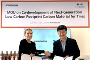 한국앤컴퍼니그룹(회장 조현범)의 글로벌 선도 타이어 기업 한국타이어앤테크놀로지㈜(대표이사 안종선·이상훈, 이하 한국타이어)가 11월 20일 중국 상하이에서 메탄 가스 열촉매 분해 혁신 기업 ‘로토부스트(ROTOBOOST)’와 ‘청록수소 카본블랙 공동 개발에 관한 업무협약(MOU)’을 체결했다. 한국타이어는 로토부스트와 친환경 탄소 배출 저감 기술 협력을 통해, 타이어 원료 취득 과정에서 발생하는 온실가스 배출량을 낮춰 중장기 경영 전략 중 하나인 ‘2050 넷제로(Net-Zero, 온실가스 순배출량 제로화)’ 달성을 앞당기고자 이번 업무협약을 체결했다. 협약식에는 한국타이어 김현철 중국본부장 부사장, 로토부스트 카이사 니쿨라이넨(Kaisa Nikulainen) 최고경영자가 참석해 지속가능한 소재 생태계 조성을 약속했다. 타이어의 핵심 소재 중 하나인 카본블랙은 이산화탄소 배출량이 높은 석유 기반 원료이다. 그간 한국타이어는 타이어 제품 생산 공정에서 발생하는 이산화탄소 배출을 저감하고자 재생 카본블랙, 인증 카본블랙 등 지속가능한 카본블랙 소재 개발을 위한 연구를 적극적으로 진행해왔다. 특히, 이번 MOU를 통해 공동 개발하는 ‘청록수소 카본블랙’은 메탄 가