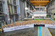 효성중공업 창원공장이 7일 초고압변압기 ‘누적생산 10조원’을 돌파했다. 단일공장에서 초고압변압기와 차단기 생산액이 모두 10조원을 넘어선 것은 국내에서 효성중공업 창원공장이 유일하다. 효성중공업은 1969년 국내 최초 154kV 초고압변압기를 개발해 생산에 나선 이래, 2002년 초고압변압기 누적 생산액 1조원을 넘어섰고, 2014년 5조원에 이어 올해 1월 10조원을 달성했다. □ 독자기술로 미국∙유럽 등 글로벌 전력시장서 경쟁력 입증 효성중공업은 지난 50여 년간 독자기술을 기반으로 국내 전력산업의 중추적인 역할을 수행해 왔다. 154kV와 345kV 초고압변압기에 이어, 1992년에는 세계 6번째이자 국내 최초로 765kV 초고압변압기를 독자 개발하며 초고압 전력기기 국산화를 이끌었다. 또한 2022년 400kV 친환경 절연유 변압기를 개발 성공했고, 최근에는 전압형 HVDC 독자기술을 바탕으로 정부의 ‘에너지고속도로’ 사업에 공급할 500kV HVDC 변환용 변압기 개발에도 박차를 가하고 있다. 효성중공업은 독자 기술력을 앞세워 현재 전세계 70여 개국에 맞춤형 제품을 공급하고 있다. 특히 미국시장에서는 2010년대 초부터 765kV 변압기 점유율