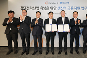 우리은행(은행장 정진완)은 22일 한화그룹 본사에서 한화그룹과 ‘첨단전략산업 생태계 구축을 위한 금융지원 협약’을 체결했다고 밝혔다. 이번 협약식에는 정진완 우리은행장과 신용인 ㈜한화 재무실장(CFO)을 비롯한 양사 주요 경영진이 참석했으며, 양사는 국가 미래 먹거리인 방산·우주항공 등 첨단전략산업을 중심으로 △시설투자 △수출입 금융 △해외사업 프로젝트에 대한 금융 협력을 추진하기로 했다. 특히 이번 협약은 한화그룹의 투자 일정에 맞춰 여신 지원 한도를 사전에 설정함으로써, 자금 집행의 신속성과 예측 가능성을 높인 것이 특징이다. 이를 통해 금융자금이 적시에 생산적인 분야로 공급돼, 실질적인 고부가가치 창출로 이어지는 ‘생산적 금융’이 현장에서 구현될 것으로 기대된다. 아울러 협력의 연장선에서 한화그룹 임직원을 대상으로 한 전문 자산관리 컨설팅 서비스도 함께 제공할 예정이다. 우리은행 관계자는 “기업의 중장기 투자 계획에 맞춰 금융 지원 구조를 선제적으로 설계하는 것이 생산적 금융의 핵심”이라며 “첨단전략산업을 중심으로 실물경제 성장을 뒷받침하는 금융의 역할을 지속해 나가겠다”고 말했다. 한편, 우리금융은 ‘우리금융 미래동반성장 프로젝트’를 통해 향후 5년간