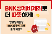 BNK부산은행(은행장 김성주)은 2일(월), 압류방지통장 ‘BNK생계비계좌’ 출시를 기념해, 신규 가입고객을 대상으로 ‘BNK생계비계좌로 더 따뜻하게’ 이벤트를 오는 27일(금)까지 실시한다고 밝혔다. 이번 이벤트를 통해 ‘BNK생계비계좌’를 개설한 고객 가운데 선착순 2000명에게 5000원 상당의 생활밀접형 쿠폰을 지급한다. 해당 쿠폰은 대형 잡화점, 편의점, 카페 등 일상생활에서 바로 사용할 수 있다. 이와 함께 이벤트 기간 동안 ‘BNK생계비계좌’ 평균잔액이 50만 원 이상인 고객을 대상으로 추첨을 통해 ▲골드바 1돈(1명) ▲신세계(이마트) 상품권 30만 원(5명) ▲다이소 상품권 10만 원(10명) ▲CU상품권 2만 원(50명) 등을 제공한다. 1인 1계좌만 개설이 가능한 ‘BNK생계비계좌’는 월 250만 원 이내의 예금과 입금액에 대해 압류가 제한되는 전용 계좌로, 채무 상황에도 최소한의 생활비를 보호하기 위해 마련된 상품이다. 해당 계좌는 입출금이 자유로운 예금상품으로, 부산은행 영업점과 모바일뱅킹, 디지털데스크를 통해 개설할 수 있다. 부산은행 장인호 개인고객그룹장은 “생계비계좌 가입고객의 일상 속 소비를 지원하고자 이번 이벤트를 진행하게 됐