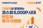 미래에셋자산운용은 코스피 5,000P 시대를 맞아 ‘TIGER ETF와 함께하는 반도체 투자 이벤트’를 진행한다고 26일 밝혔다. 이번 이벤트는 국내 증시 상승을 견인한 한국 반도체 산업에 투자하는 ‘TIGER 반도체TOP10 ETF(396500)’, ‘TIGER 반도체TOP10레버리지 ETF(488080)’를 대상으로 진행한다. 코스피 지수가 5,000P를 돌파한 가운데 최근 1년간 국내 증시는 반도체 업종을 중심으로 강한 상승세를 보였다. 인공지능(AI) 산업과 반도체 슈퍼사이클에 대한 기대감이 이어지며 ‘삼성전자’와 ‘SK하이닉스’ 등 반도체 대표 종목들이 지수 상승을 견인했다. 23일 기준 코스피 지수가 최근 1년간 96.71% 상승하는 동안 ‘TIGER 반도체TOP10 ETF’와 ‘TIGER 반도체TOP10레버리지 ETF’는 각각 126.85%, 327.98%의 수익률을 기록하며 코스피 지수를 상회했다. ‘TIGER 반도체TOP10 ETF’는 23일 기준 삼성전자와 SK하이닉스의 편입 비중 합계 58.02%로 국내 반도체 ETF 중 가장 높고, 반도체 밸류체인에 집중된 포트폴리오를 바탕으로 연초 이후 21.32% 성과를 기록했다. 지난해 개인 순매수