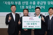 하나은행(은행장 이호성)은 지난 17일 HL만도(대표이사 조성현), 한국무역보험공사(사장 장영진)와 함께 『자동차 부품산업 수출 공급망 강화를 위한 금융지원』 1호 지원 기업인 (주)케이에이씨(대표이사 하영봉)를 방문해 보증서를 전달하고, 유동성 지원 등 내실 있는 금융지원을 이어가기로 했다고 밝혔다. 이번 『자동차 부품산업 수출 공급망 강화를 위한 금융지원』은 미국 상호관세 시행으로 직‧간접 피해가 우려되는 자동차부품 수출기업의 경영 안정화를 위해 지난 9월 하나은행과 HL그룹(회장 정몽원)이 체결한 업무협약의 일환으로, 하나은행(60억원)과 HL만도(20억원)가 총 80억원을 공동 출연하여 1,020억원 규모의 수출금융을 지원하는 프로그램이다. 지원 대상은 HL그룹의 자동차부품 전문 생산기업인 HL만도가 추천하는 협력업체로, 선정된 기업은 ▲보증료 100% 지원 ▲대출금리 우대 ▲외국환수수료‧환율 우대 등 실질적인 금융혜택을 지원받게 된다. 이날 강원도 원주시 소재 (주)케이에이씨 반계공장에서 열린 행사는 1호 보증서 발급 기업을 격려하고, 대기업과 중소‧중견기업 간의 지속적인 상생 협력을 도모하고자 마련됐다. 1호 보증 기업에 선정된 (주)케이에이씨는