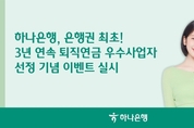 하나은행(은행장 이호성)은 고용노동부가 주관하는 '2025년 퇴직연금사업자 평가'에서 은행권 최초로 3년 연속 우수사업자 및 고용노동부장관상을 수상한 기념으로 '3년 연속 퇴직연금 우수사업자, 하나로!' 이벤트를 실시한다고 밝혔다. 내년 2월 27일까지 진행 되는 이번 이벤트는 개인형IRP와 DC(확정기여형) 가입 손님을 대상으로 하며, 개인형IRP의 경우 ▲1백만원 이상 신규가입(자동이체 5만원 및 1년 이상) ▲1천만원 이상 타 금융기관 연금계좌 가져오기 ▲1천만원 이상 퇴직금 입금 중 한 가지를 충족하고 하나원큐 앱을 통해 응모한 손님 대상 1,500명을 추첨하여 스타벅스 커피쿠폰 7매를 증정한다. DC(확정기여형) 손님의 경우 ▲1천만원 이상 DC(확정기여형) 가입 ▲1천만원 이상 타 금융기관 DC(확정기여형)에서 하나은행 DC(확정기여형)로 이전 ▲1천만원 이상 DB(확정급여형) 제도에서 DC(확정기여형)로 제도 전환 후 입금 중 한 가지 조건을 충족하고 하나원큐 앱을 통해 응모한 손님에게 1,000명 한정으로 스타벅스 커피쿠폰 7매를 증정한다. 이번 이벤트의 자세한 내용은 하나은행 대표 모바일뱅킹 앱 ‘하나원큐’ 또는 모바일 웹페이지을 통해 확인
