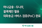 하나금융그룹(회장 함영주)은 두나무(대표 오경석)와 공동으로 블록체인 기술을 활용한 외화송금 서비스에 대한 기술검증(PoC)을 성공적으로 완료했다고 밝혔다. 이번 기술검증(PoC)은 하나은행 국내외 지점들 간에 기존 SWIFT 방식으로 주고받던 송금 전문을 두나무가 운영하고 있는 블록체인 네트워크인 GIWA체인의 블록체인 메시지로 대체하는 방식으로 이뤄졌다. 이를 통해 하나은행은 기존 SWIFT 방식 대비 외화송금 거래의 처리 소요시간과 비용을 획기적으로 경감할 수 있음을 확인했다. 또한, 하나금융그룹과 두나무는 자금 송금거래의 필수 검증요소인 AML(자금세탁방지), KYC(고객확인의무) 등 분야에서도 꾸준히 협력해 온 결과, 외환거래에 필요한 내부통제 및 리스크관리에서도 충분한 기술적 안정성을 갖췄다. 이번 기술검증(PoC)은 지난해 12월 하나금융그룹과 두나무가 ‘블록체인 기술 기반 글로벌 금융서비스 공동 개발을 위한 업무협약’을 체결하고, 외국환 업무를 포함한 전통적인 금융 서비스에 블록체인 기술을 적용하기 위한 지속적 협력의 첫 번째 결실이다. 특히, 업무협약 체결 당시 외국환 분야 1등 금융그룹과 디지털자산 분야 1등 빅테크 기업의 만남으로 화제를