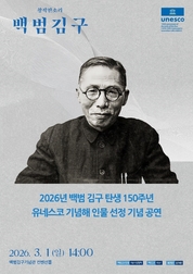 백범 김구 탄생 150주년 유네스코 기념해를 기념하는 첫 공식 행사로 (사)백범김구선생기념사업협회와 백범김구기념관, 김구재단 공동 주관으로 판소리 〈백범 김구〉 공연이 효창공원에 있는 백범김구기념관에서 개최된다. 2026년은 백범 김구 탄생 150주년이자, 유네스코가 선정한 세계기념해로 지정된 해이다. 이번 유네스코 기념해 인물 선정은 (사)백범김구선생기념사업협회와 백범김구기념관, 유네스코한국위원회, 정부가 지난 한 해 동안 긴밀히 협력해 이뤄낸 성과로, 백범 김구 선생의 삶과 사상, 그리고 대한민국의 독립정신과 평화사상이 세계적으로 공인 받았다는 점에서 역사적 의미를 지닌다. 이에 (사)백범김구선생기념사업협회와 기념관, 김구재단은 오는 3월 1일(일) 오후 2시, 백범김구기념관 컨벤션홀에서 판소리 공연을 개최한다. 이번 공연은 유네스코 기념해 지정 이후 처음으로 열리는 공식 기념 행사로, 백범 김구 선생의 정신과 사상을 문화예술을 통해 국민과 함께 나누는 상징적인 출발점이 될 것이다. 협회는 그동안 여러 기관과 단체에서 백범 김구 선생을 기리기 위한 다양한 행사를 자발적으로 준비해 주신 데 대해 깊은 감사의 뜻을 전하며 이러한 관심과 참여는 유네스코 세계기