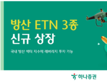 하나증권은 국내 방산 섹터 지수를 추종하는 ‘하나 K방산TOP10 ETN’과 ‘하나 레버리지 K방산TOP10 ETN’ 그리고 ‘하나 인버스 2X K방산TOP10 ETN’을 신규 상장했다고 30일 밝혔다. ‘하나 K방산TOP10 ETN’은 iSelect K방산TOP10 TR 지수를 추종하는 상품으로 국내 방산 섹터 내에서 선별된 10가지 대표 종목으로 구성하여 방산 산업에 집중 투자할 수 있도록 설계하였다. 이 지수의 일간 수익률을 2배로 추종하는 ‘하나 레버리지 K방산TOP10 ETN’과 -2배로 추종하는 ‘하나 인버스 2X K방산TOP10 ETN’도 함께 상장함으로써 투자자가 시장 상황에 따라 보다 다양한 전략을 구사할 수 있도록 하였다. 특히, ‘하나 인버스 2X K방산TOP10 ETN’은 국내주식 테마형 인버스 2X (곱버스) 상품으로써, 단순히 하락에 베팅하는 수단을 넘어 기존 방위산업 투자자의 포트폴리오 리스크 관리 및 헤지 수단으로 활용될 수 있도록 설계되었다. 이상호 하나증권 파생본부 본부장은 “하나증권은 이번 방산 테마형 등 다양한 상품을 출시하여ETN 라인업 확장을 위한 노력 중”이라며, “빠르게 변화하는 시장에서 손님들의 니즈를 충족할 상품