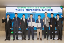 현대건설이 공동주택 단지에 모듈러 승강기를 도입하며, 건설 현장 안전과 품질 제고에 박차를 가한다. 현대건설은 2일(목) 서울 종로구에 위치한 계동 본사에서 현대엘리베이터와 ‘공동주택부문 모듈러 E/V 도입 및 기술협력’을 위한 업무협약(MOU)을 체결했다. 협약식에는 현대건설 윤정일 구매본부장과 현대엘리베이터 조재천 대표이사 등 양사 주요 관계자들이 참석했다. 모듈러 승강기는 주요 부품을 공장에서 사전 제작하여 현장에서는 조정 작업과 내·외장 마감 등만 진행하는 공법으로, 공사 기간을 단축하는 것은 물론 시공 과정의 안전성이 높아 혁신 솔루션으로 평가받고 있다. 현대건설은 이번 협약을 통해 현대엘리베이터와 모듈러 승강기의 기술 개발과 성능 개선에 협력하는 것은 물론 공동주택 현장 적용을 위한 건축물 구조 및 설계, 파일럿 현장 설치 등을 지원하기로 약속했다. 특히 양사는 업무협약에 앞서 지난 8월 힐스테이트 이천역에 저층용 모듈러 승강기를 시범 설치하고 한국승강기안전공단의 검사필증을 획득한 바 있어, 향후 실증 결과를 토대로 한 성능 개선과 국내 최초 상용화에 더욱 속도를 낼 전망이다. 모듈러 승강기는 구성부품의 90%를 공장에서 사전 제작해 균일한 품질이