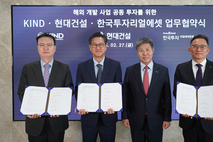 현대건설이 민관 파트너십에 기반해 해외 주요 지역을 중심으로 부동산 개발사업에 본격 나선다. 현대건설은 27일(금) 서울 영등포구 여의도동에 위치한 한국투자리얼에셋운용(Korea Investment Real Asset Management, 이하 한투리얼에셋) 본사에서 한국해외인프라도시개발지원공사(Korea Overseas Infrastructure & Urban Development Corporation, 이하 KIND), 한투리얼에셋과 ‘글로벌 부동산 개발사업 경쟁력 강화를 위한 포괄적 업무협약’을 체결했다. 이날 협약식은 김경수 현대건설 글로벌사업부장과 원병철 KIND 사업개발본부장, 김용식 한투리얼에셋 대표이사를 비롯한 각 사 주요 관계자가 참석한 가운데 진행됐다. 이번 협약은 민간기업의 전문성과 공공기관의 정책 지원 역량을 결합한 ‘팀 코리아’를 결성하고, 해외 부동산 개발사업에 대한 공동 투자 및 개발을 추진하여 급변하는 글로벌 부동산 시장 환경에 적극 대응하고자 마련됐다. 이번 협약을 계기로 3사는 포괄적·장기적 협력 관계를 구축하고 협력 범위와 대상 사업을 지속적으로 확대해 나갈 계획이다. 본 협약에 따라 현대건설, KIND, 한투리얼에셋
