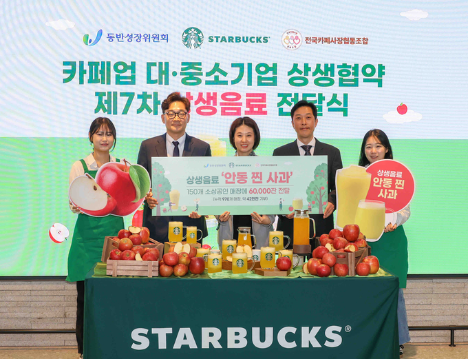 이를 통해 스타벅스는 동반위, 카페조합과 함께 ▲상생음료 개발 및 전달 ▲자연재해 피해 소상공인 점주에 대한 복구 지원 ▲농가 방문 봉사활동 및 지역 특산물 활용한 음료푸〮드 벤치마킹 등 상생활동을 전개해 나갈 것을 약속했다.