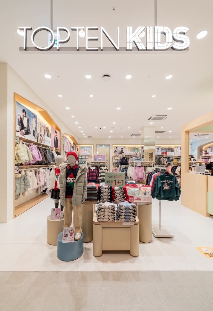 이 같은 성과는 상권 특성과 복합쇼핑몰 환경을 고려한 차별화된 매장 전략이 주효했다는 분석이다. 탑텐키즈는 기존 매장과 달리 카운터를 입구 쪽에 배치해 고객 접근성을 높이고, 매장 내 세 개 면의 벽면을 활용해 상품을 아이템별로 구성했다. 이를 통해 주력 상품의 소구 포인트를 명확히 전달하고, 고객 동선을 자연스럽게 유도하며 상품 인지도를 높이는 효과를 거뒀다.