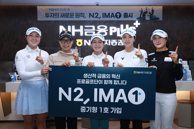 NH투자증권(대표이사 윤병운)은 자사 프로골프단 소속 선수들이 첫 종합투자계좌(IMA) 상품인 ‘N2 IMA 1 중기형 1호’에 직접 가입했다고 1일 밝혔다. NH투자증권 프로골프단 소속 박민지, 이가영, 정윤지, 김시현, 최정원 프로는 지난 31일 NH투자증권 영업부금융센터를 방문해 IMA 1호 상품 출시 첫날 가입자로 이름을 올렸다.
