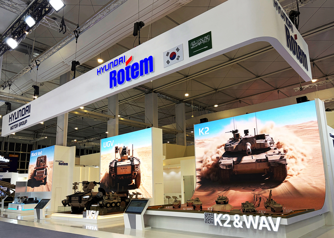현대로템은 전시관에 글로벌 시장에서 우수한 평가를 받고 있는 K2 전차를 비롯해 장애물개척전차, 구난전차 등 K2 전차 기반의 다양한 계열전차 목업을 선보인다. 또 수출형으로 개발한 30t급 차륜형장갑차와 함께 기존 차륜형장갑차 플랫폼을 활용한 지휘소용차량, 의무후송차량 목업을 전시한다. 현대로템은 2022년 7월 폴란드에 K2 전차를 처음 수출한 이후 지난해 12월 페루와 전차 및 차륜형장갑차 공급 총괄 합의를 체결했다.