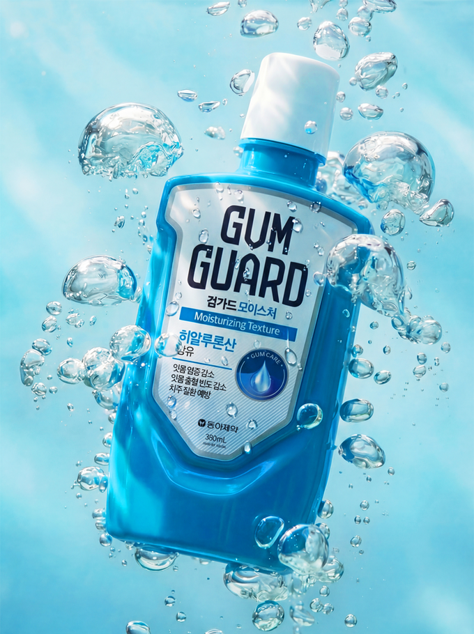 연구에 따르면 성인의 60% 이상이 구강 건조를 경험하는 것으로 나타났으며 건조한 구강 환경은 치주질환 발생 가능성을 높일 수 있어 일상적인 관리가 중요하다. 검가드 모이스처는 히알루론산을 더해 구강 내 촉촉한 사용감을 고려한 제품이다.