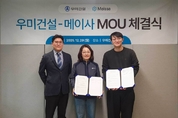 우미건설은 지난달 29일 서울 강남 린스퀘어에서 공간정보 전문 기업 메이사와 ‘시공 기록 자동화 및 디지털 트윈 기반 현장 운영 기술 개발’을 위한 업무협약(MOU)을 체결했다고 밝혔다. 이날 협약식에는 우미건설 김혜원 상무와 메이사 최석원 대표 등 양사 주요 관계자가 참석했다. 메이사는 2017년 설립된 스타트업으로 국내 건설사 다수에 드론 및 위성데이터 기반 디지털트윈 솔루션을 공급하는 건설 드론 데이터 플랫폼 개발 기업이다. 우미건설은 지난 2024년부터 전 현장에 메이사의 스마트 공간정보 플랫폼을 도입해 운영해 왔으며, 이번 협약은 그동안 축적된 현장 피드백을 반영해 플랫폼을 한 단계 고도화하기 위해 마련됐다. 양사는 이번 협약을 통해 현장 업무 최적화 기능 강화, 시공 기록 자동화 구축을 우선적으로 추진한다. 장기적으로는 드론, 360도 카메라, CCTV, BIM 등 다양한 데이터를 분석하여 시공·안전·품질 관리에 활용할 수 있는 ‘디지털 트윈 기반 현장 통합 운영 체계’를 공동 개발할 계획이다. 우미건설은 스마트 건설 기술의 실증과 내재화에 꾸준히 투자해 온 기업이다. 특히 자체 개발 AI인 ‘린GPT’, 드론 기반 관제 시스템 ‘메이사(회사 이름