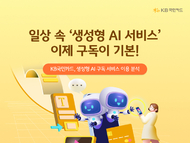 KB국민카드(사장 김재관)가 생성형 AI 구독 서비스 결제 데이터를 분석한 결과, 최근 2년간 생성형 AI 유료 구독 고객수가 가파르게 증가하고 있는 것으로 나타났다. KB국민카드는 2024년 1월부터 2025년 12월까지 최근 2년간 KB국민 신용·체크카드로 생성형 AI 관련 가맹점에서 결제한 고객 348천명의 데이터를 분석했다. 분석 대상은 텍스트, 이미지, 영상, 정보검색, 업무 어시스턴트, 음악, 코드생성 등 총 14종의 생성형 AI 구독 서비스다. ■ 생성형 AI 구독 고객 2년 만에 413% 증가, 2개 이상 구독 고객 비중도 확대 분석 결과 생성형 AI 구독 서비스를 유료로 이용하는 고객은 최근 2년 동안 지속적인 증가세를 보였으며, 특히 2025년 2분기에는 성장이 두드러졌다. 2024년 1분기 기준 2025년 4분기 생성형 AI 구독 이용 고객 수는 413% 증가했으며, 이용 금액은 516% 증가한 것으로 나타났다. 특히 텍스트 기반 생성형 AI 서비스 이용 고객 수는 491%, 이용 금액은 609% 증가하며 생성형 AI 구독 시장의 성장을 주도했다. 이미지, 영상 등 AI서비스 역시 같은 기간 이용 고객 수 93%, 이용 금액 178% 증가