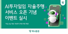 하나증권(대표이사 강성묵)은 AI투자일임 자율주행 서비스 오픈을 기념해 가입 손님을 대상으로 혜택을 제공하는 이벤트를 진행한다고 13일 밝혔다. 이번 이벤트는 기간 내 자율주행 서비스에 최초 가입하고 100만원 이상 입금 후 운용을 유지한 손님을 대상으로 진행된다. 추첨을 통해 손님 1000명에게 국내주식 매수쿠폰을 제공하며, 가입 금액 구간에 따라 추첨을 통해 최대 12만원 상당의 국내주식 매수쿠폰을 추가 지급할 예정이다. AI자율주행 서비스 가입과 이벤트 신청은 하나증권 모바일트레이딩시스템(MTS) ‘원큐프로’에서 가능하며, 이벤트 관련 세부사항은 하나증권 홈페이지 또는 손님케어센터(1588-3111)를 통해 확인할 수 있다. 조대헌 하나증권 AI디지털전략본부장은 “자산배분 운용과 투자판단에 어려움을 느끼는 손님들을 위해 이번 서비스를 런칭했다”며 “향후에도 제휴 운용사를 지속적으로 확대해 손님들의 투자 선택의 폭을 넓혀 나갈 예정”이라고 전했다. 한편 AI자율주행 서비스는 디셈버앤컴퍼니 자산운용 ‘핀트’의 AI 알고리즘을 활용한 투자일임 서비스다. 별도의 앱 설치 없이 하나증권 MTS에서 바로 이용 가능하며, 국내외 주식 및 ETF 등 다양한 자산군에