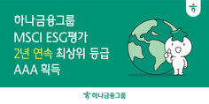 하나금융그룹(회장 함영주)은 글로벌 ESG 평가기관인 모건 스탠리 캐피탈 인터내셔널(Morgan Stanley Capital International, 이하 MSCI)이 발표한 2025년 ESG 평가에서 2년 연속 최고 등급인 ‘AAA’ 등급을 획득했다고 밝혔다. MSCI ESG평가는 기업의 지속가능성을 평가해 투자자들에게 유용한 정보를 제공하는 글로벌 평가로, 전 세계 투자자가 인정하는 가장 공신력 있는 글로벌 평가 기관 중 하나이다. 매년 전 세계 8,500여개 상장사를 대상으로 ESG경영 현황을 평가해 AAA부터 CCC까지 7단계의 등급을 부여한다. 하나금융그룹은 올해 10월말 경 MSCI ESG 은행산업 평가 대상 기업(576개) 중에 2년 연속 국내 금융사 1위 달성과 동시에 2년 연속 최고 등급인 ‘AAA'를 기록하며, ESG 중심 경영에 높은 평가를 받는 성과를 거뒀다. 특히, 이번 평가에서 하나금융그룹은 ▲이사회 독립성 및 투명성 제고 ▲선제적 직원 복지와 조직문화 개선, 윤리경영 실천 등을 통해 지배구조 부문에서 우수성을 인정받았으며, 이밖에도 ▲소비자 중심의 정책 운영 ▲기후리스크 평가 및 관리 시스템 강화 등 다양한 분야에 걸쳐 글로벌 최
