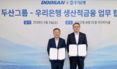 우리은행(은행장 정진완)은 지난 3일 서울 중구 우리은행 본점에서 두산그룹(대표이사 김민철)과 ‘국가 미래전략산업 생태계 구축 및 성장을 위한 금융지원 업무협약’을 체결했다. 협약식에는 정진완 우리은행장과 김민철 ㈜두산 대표이사를 비롯한 양사 주요 경영진이 참석했다. 양사는 이번 협약을 통해 △시설투자 △수출입 금융 △해외투자 △협력업체 상생금융 지원 등 생산적 금융 분야에서 협력할 계획이다. 이번 협약은 우리금융그룹이 추진 중인 생산적·포용 금융 정책인 ‘우리금융 미래동반성장 프로젝트’의 일환으로 마련됐다. 에너지·스마트머신·반도체 및 첨단소재 등 미래성장동력 분야에서 글로벌 경쟁력을 갖춘 두산그룹과 전략적 협력을 강화하기 위한 것이다. 두산그룹은 1896년 박승직상점을 모태로 출범했으며, 올해 창립 130주년을 맞았다. 우리은행은 1899년 대한천일은행으로 시작해 올해 창립 127주년을 맞는 우리나라 최장수 백년 기업이다. 두 기관은 오랜 기간 동안 대한민국 산업과 금융의 역사를 함께해 왔다. 우리은행은 두산그룹의 중장기 투자 계획에 맞춰 여신 지원 한도를 사전에 설정해 자금 집행의 신속성과 예측 가능성을 높였다. 이를 통해 두산그룹은 자금 조달의 불확실