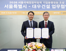 대우건설이 6일 서울시와 ‘2026 서울국제정원박람회’ 기업동행정원 참여를 위한 업무협약을 체결하고, 서울숲에 하이엔드 주거 브랜드 ‘써밋’의 철학을 담은 정원을 조성한다고 밝혔다. 협약식은 이날 오전 서울시청 서소문2청사에서 열렸으며 김용현 대우건설 건축사업본부 상무, 김영환 서울시 정원도시국장를 비롯한 양측 주요 관계자들이 참석했다. 2026 서울국제정원박람회는 오는 5월 1일 서울숲에서 개막하며, ‘Seoul, Green Culture: 자연과 도시문화가 공존하는 정원도시 서울’을 주제로 열린다. 서울숲의 자연 생태 환경과 성수동 일대를 연계해 정원 문화를 도시 공간으로 확장하는 것이 특징이다. 총 71만㎡ 규모로 조성되며 국내외 관람객 1500만 명 방문을 목표로 역대 최대 규모로 개최될 예정이다. 대우건설은 하이엔드 주거 브랜드 ‘써밋(SUMMIT)’의 철학을 반영한 ‘써밋 사일런스(SUMMIT Silence)’ 정원을 조성할 예정이다. ‘열망과 성취의 기념비(The Monument of Aspiration)’라는 브랜드 철학을 공간 콘셉트로 반영한 정원으로, 도심 속에서 조용한 휴식을 경험할 수 있도록 설계됐다. 정원 중앙에는 방문객이 머무를 수