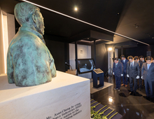 HD현대가 故 정주영 창업자 서거 25주기를 맞아 고인의 뜻을 기리고 추모하는 행사를 진행했다. HD현대는 20일(금), 경기도 판교에 위치한 HD현대 글로벌R&D센터에서 정기선 회장 등 주요 경영진이 참석한 가운데 故 정주영 창업자의 25주기 추모행사를 가졌다고 밝혔다. 5층 청운홀에서 진행된 이날 행사는 개회사, 추모사, 헌화 및 묵념, 기념 촬영 순으로 이어졌다. 정기선 회장은 추모사를 통해 “25년이라는 시간이 지났지만 창업자님의 삶과 정신은 여전히 우리 안에 깊이 남아 있다“며, “불가능해 보이던 일을 현실로 만들어낸 발자취는 HD현대가 존재할 수 있는 원동력이 되었다”고 추모의 뜻을 밝혔다. 이어 참석자들은 정주영 창업자의 흉상 앞에서 헌화 및 묵념을 하며 창업자를 기리고 발자취를 되새기는 시간을 가졌다. 25주기를 맞아 HD현대는 임직원 및 방문객들이 자유롭게 추모할 수 있도록 특별한 추모 공간을 마련했다. LED 화면을 활용해 생전 고인의 집무실을 재현한 디지털 집무실과 어록 전시 공간을 구성하고, 창업자의 생전 말씀을 담은 영상을 송출했다. 이를 통해 임직원과 방문객들이 창업자의 정신과 뜻을 되새길 수 있도록 했다. 이와 함께 임직원들