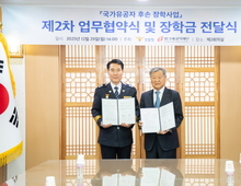 빙그레공익재단(이사장 정수용)은 경찰청(청장 직무대리 유재성)과 2025년도 국가유공자 후손 장학생들에게 장학금을 전달했다고 밝혔다. 빙그레공익재단과 경찰청은 12월 29일(월) 서울 서대문구 경찰청에서 장학금 수여식을 개최했다. 양 기관은 2019년 경찰 관련 독립유공자 후손을 지원하는 업무협약을 체결했으며, 2021년부터는 순직경찰관 자녀까지 장학사업 대상을 확대하고 장학금 규모도 지속적으로 증액해 왔다. 그 결과, 지난 5년간 국가유공자 후손 119명에게 총 1억 8천만 원의 장학금을 지원했으며, 올해도 독립유공자 후손과 순직경찰관 자녀들에게 장학금을 전달하여, 후손들이 안전하고 자유로운 나라에서 꿈과 재능을 마음껏 펼칠 수 있도록 응원했다 빙그레공익재단은 3.1운동 및 대한민국임시정부 수립 100주년을 계기로 경찰청과 협력 체계를 구축하고 장학사업을 이어왔다. 이번 제2차 업무협약을 통해 지원 대상을 미취학 아동까지 확대하고, 향후 3년간 추가로 1억 8천만 원의 장학금을 지원함으로써 보다 폭넓은 국가유공자 후손 지원에 나설 계획이다. 한편, 경찰 관련 국가유공자 후손 장학사업은 재단 출연사인 빙그레 김호연 회장의 독립유공자에 대한 각별한 관심과 실천
