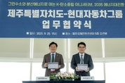 현대자동차그룹이 제주도와 손잡고 그린수소, 분산에너지 등 재생에너지 분야 협력을 강화해 제주도의 탄소중립 도시 전환에 박차를 가한다. 현대차그룹은 25일(목) 제주국제컨벤션센터에서 양희원 현대차그룹 R&D본부장 사장, 켄 라미레즈 에너지&수소사업본부장 부사장, 오영훈 제주특별자치도 도지사 등 주요 관계자들이 참석한 가운데 ‘제주도 그린수소 및 분산에너지 생태계 조성을 위한 업무협약(MOU)’을 체결했다고 26일 밝혔다. 이번 협약은 제주도가 추진하는 2035 탄소중립 달성 목표에 발맞춰, 그린수소와 분산에너지를 중심으로 한 재생에너지 전환을 목적으로 한다. 그린수소는 재생에너지로 생산한 전기로 물을 분해해 온실가스 배출 없이 생산되는 수소이며, 분산에너지는 소규모로 지역 곳곳에서 생산·소비되는 에너지를 의미한다. 이를 위해 현대차그룹과 제주도는 수소에너지의 생산부터 저장, 운송, 공급, 활용까지 수소 밸류체인 전반에서 협력을 강화하고 V2G 서비스 구축을 중심으로 분산에너지 분야에서도 적극 협력한다. 그린수소 생산 기술 실증, 수소 모빌리티 확대 등 수소산업 전 과정 협력 현대차그룹과 제주도는 협약을 통해 △그린수소 생산 확대를 위한 기술 개발