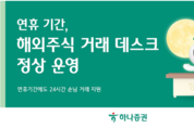 하나증권(대표이사 강성묵)이 추석 연휴 기간에도 손님들이 불편함 없이 해외 주식을 투자할 수 있도록 해외주식 데스크를 정상 운영한다고 밝혔다. 하나증권은 21개 국가의 주식 거래를 지원하고 있으며, 연휴 기간 동안 휴장을 제외한 국가의 거래는 모두 정상 지원한다. 중국 증시는 국내와 동일하게 휴장이며 6일은 대만이, 7일에는 홍콩 증시가 휴장이다. 손님들이 온오프라인으로 불편함 없이 거래 할 수 있도록 해외 데스크는 24시간 운영된다. 남택민 하나증권 PWM영업본부장은 “오랜 연휴 기간 발생할 수 있는 해외시장 변동성에 즉시 대처 가능하도록 24시간 데스크 운영에 만전을 기하겠다”고 말했다. 한편, 하나증권은 신규 비대면 손님들을 대상으로 지난달부터 ‘해외주식 웰컴 이벤트’를 진행하고 있다. 계좌를 개설한 손님 전원에게 30달러 상당의 미국 주식 매수 쿠폰과 1천원 상당의 팔란티어(PLTR) 소수점 주식을 지급한다. 이밖에 미국주식 거래 수수료 전액 면제, 6개월간 달러 환전 우대 혜택 등도 제공한다.