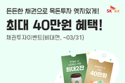 SK증권이 오는 3월 31일까지 ‘온라인 채권 매수 이벤트’를 진행한다고 6일 밝혔다. 이번 이벤트는 비대면 고객을 대상으로 하며, 이벤트 기간 내 온라인으로 장외채권 또는 단기사채 매수 시 순매수 금액별 모바일 신세계상품권을 제공한다. 장외채권은 순매수금액 ▲5백만원 이상 1만원 ▲5천만원 이상 5만원 ▲3억원 이상 25만원의 상품권을 지급하고, 단기사채는 순매수금액 ▲1억원 이상 3만원 ▲3억원 이상 15만원의 상품권을 지급한다. 두 이벤트는 대상 채권 매수 시 자동 참여되며, 동시 참여가 가능해 조건 충족 시 최대 40만원의 상품권을 받을 수 있다. 더불어 이벤트 기간 내 2020년 1월부터 2025년 12월까지 비대면 계좌에서 장외채권 또는 단기사채 거래가 한 번도 없던 고객이 장외채권 또는 단기사채를 매수하는 경우 스타벅스 커피 각 1잔을 추가 증정한다. 단, 장외채권은 10만원 이상 순매수 할 경우에 한정된다. SK증권 관계자는 “개인투자자들의 채권 투자에 대한 관심이 지속됨에 따라 온라인채권 이벤트를 준비했다”라며, “온라인을 통한 간편한 채권투자 서비스에 더해, 다양한 금리와 만기의 채권 상품도 선보일 계획”이라고 말했다. 이벤트에 관한 자세한